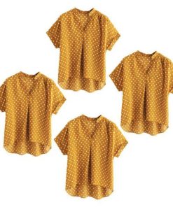 レディースTシャツ 大人 半袖 Vネック 大きいサイズ 女性トップス スリム オフィス 通勤 イエロー