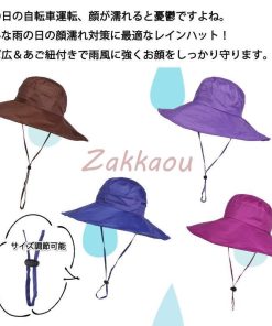 レディース 雨よけ 防水 自転車通勤 UVカット UV 日よけ帽子 つば広 折りたたみ 紫外線対策 あご紐付き コンパクト 折り畳み 軽量 レインハット 雨用帽子