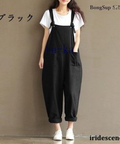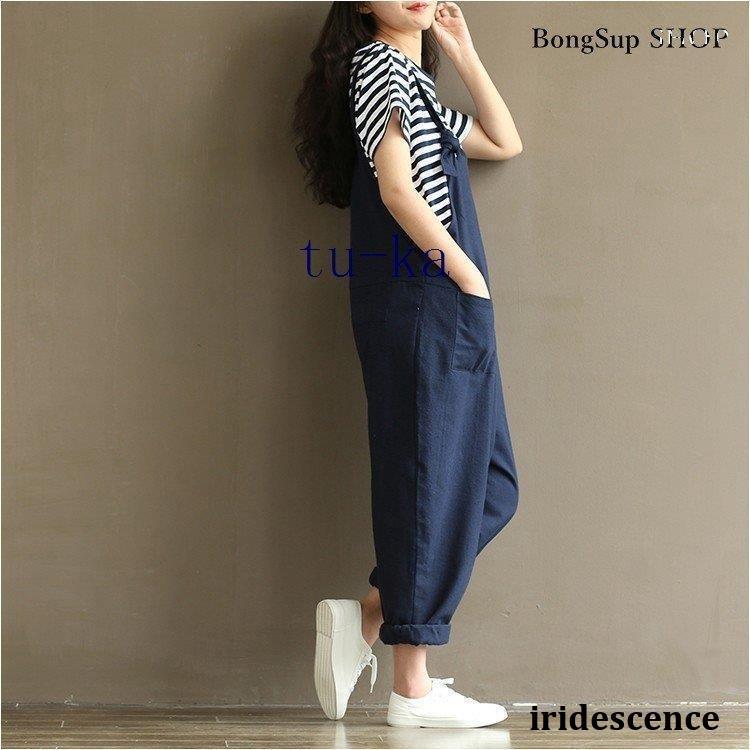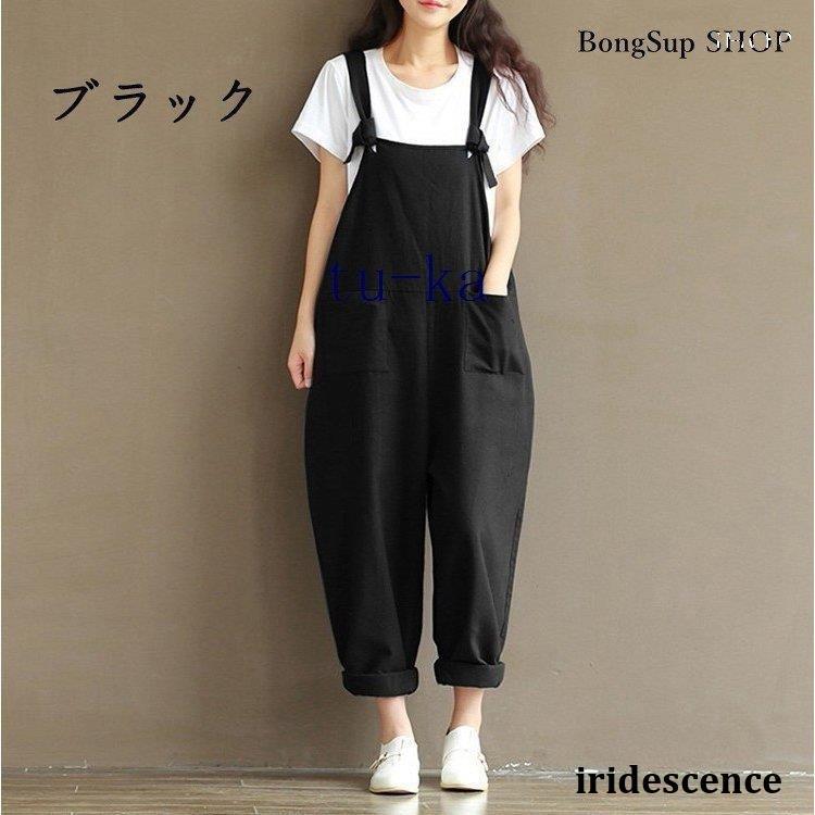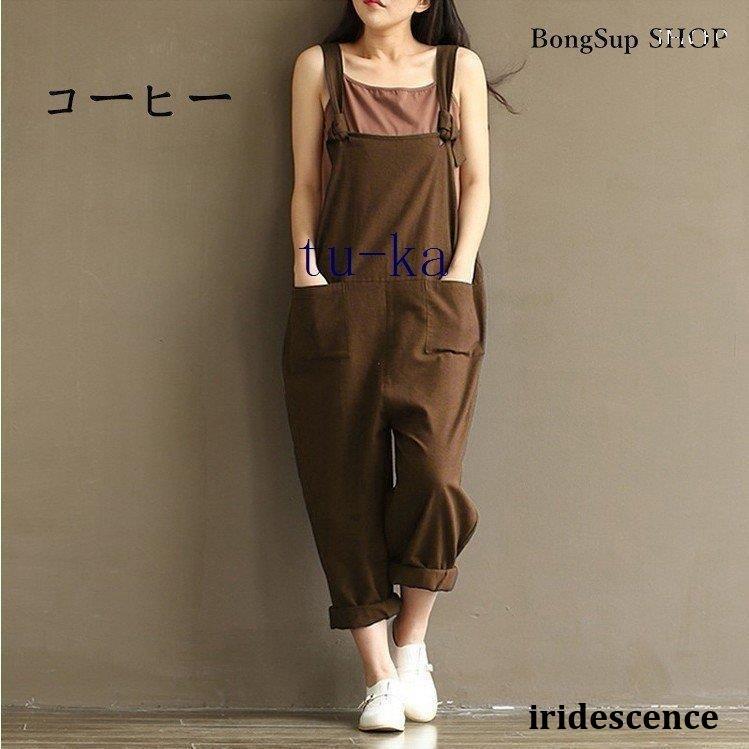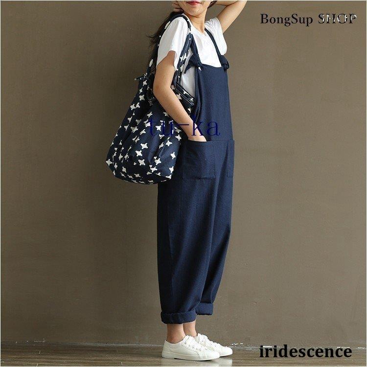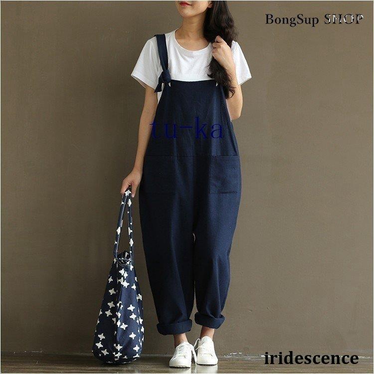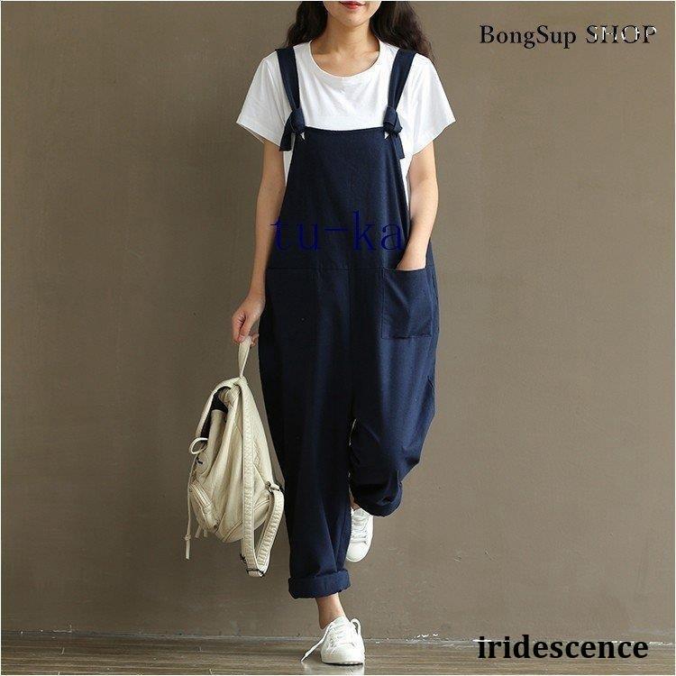 レディース 麻?リネン オーバーオール 綿麻混 ガウチョパンツ 夏 ロング ゆったり 大きいサイズ ポケット付き きれいめ カジュアル 通勤 着痩せ
