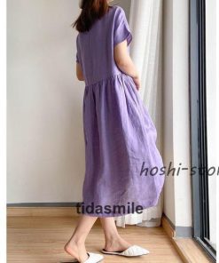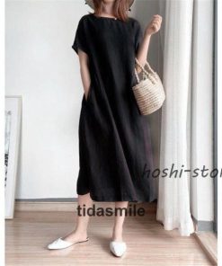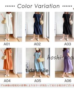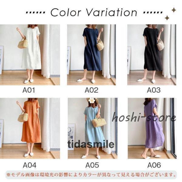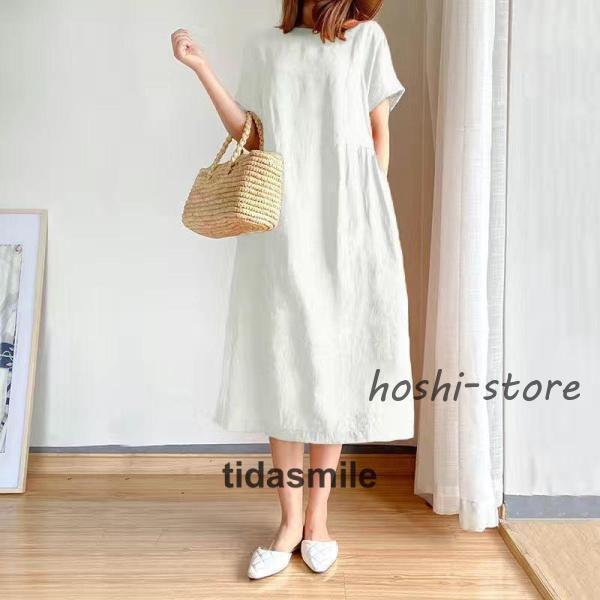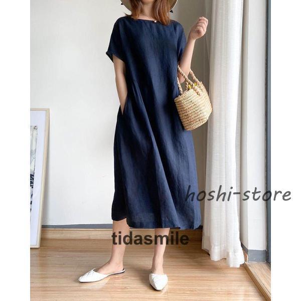 ワンピース ロング レディース リネン風 半袖 春 夏 きれいめ カジュアル ゆったり 体型カバー 膝丈 30代 40代 着痩せ シンプル おしゃれ