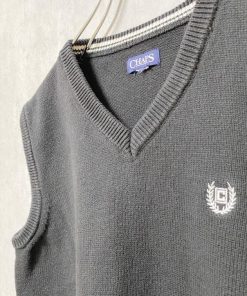 古着 used CHAPS チャップス ワンポイント刺繍ニットベスト Vネック 黒 ブラック シンプル ノームコア
