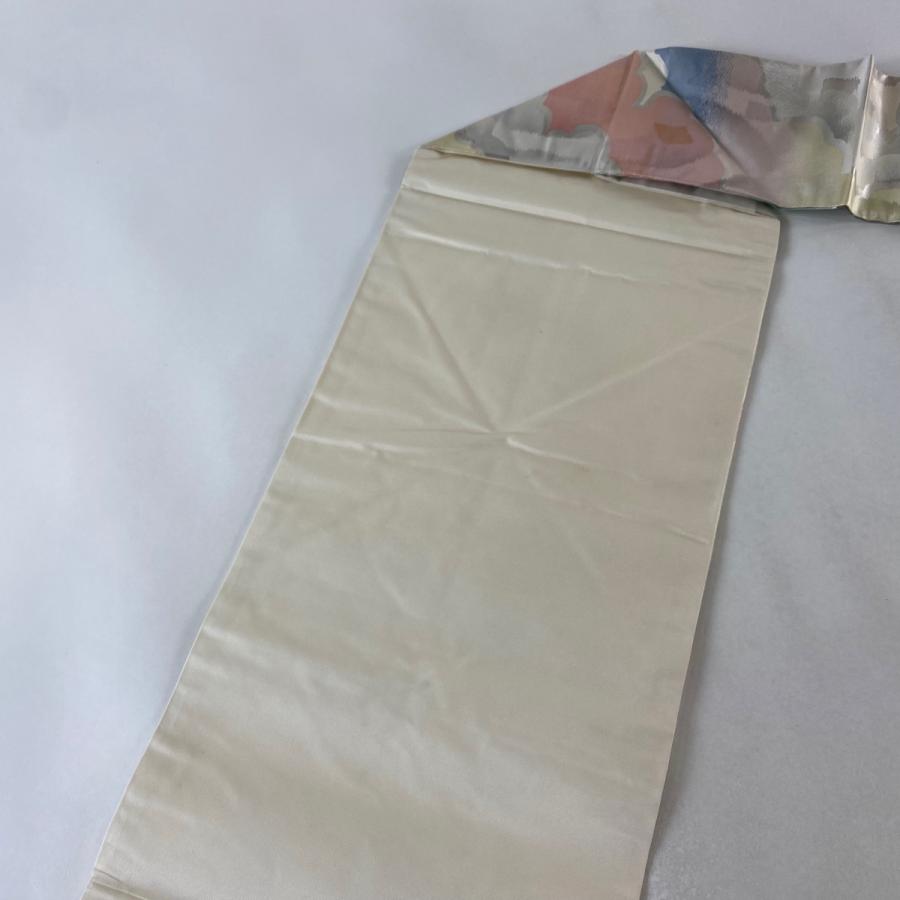 名古屋帯 優品 雲文 箔 灰白 正絹 中古