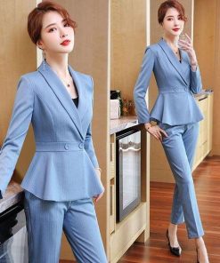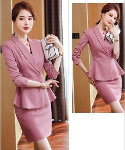大きいサイズ スーツ フォーマル OL ペプラムJK!パンツorスカートスタイルのストライプ柄レディーススーツ 2点セット 3L 4L 5L 6L サイズ セール