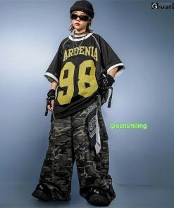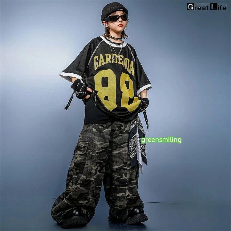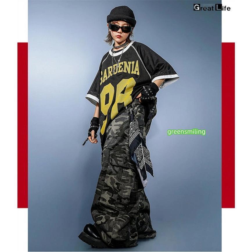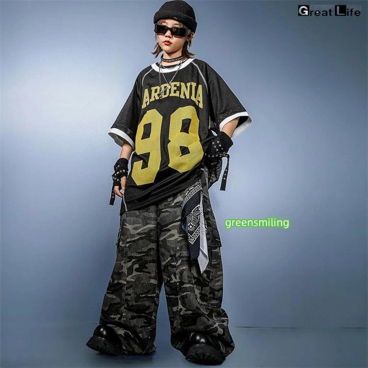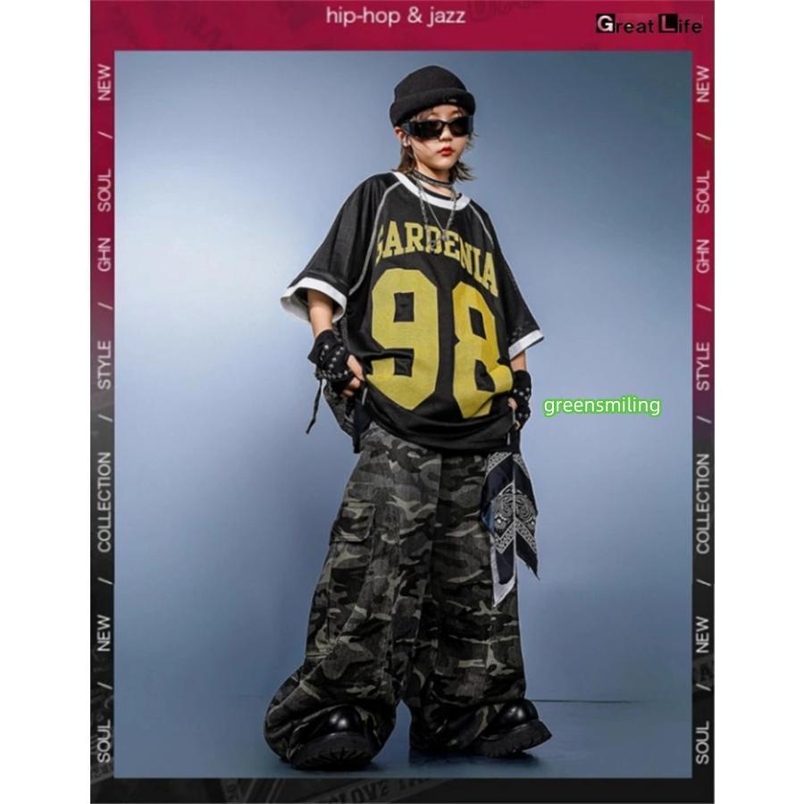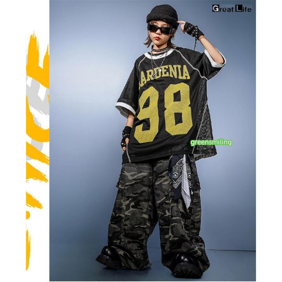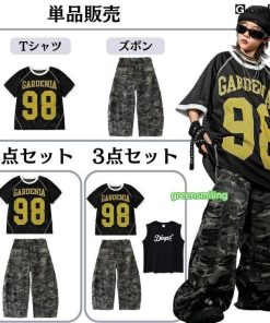 柄 HIPHOP 練習着 ダンス衣装 キッズ 小学生 女の子 男の子 ダンス 衣装 ヒップホップ バスケウェア グレー ズボン かっこいい 黒 Tシャツ 子供
