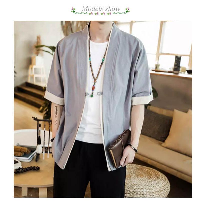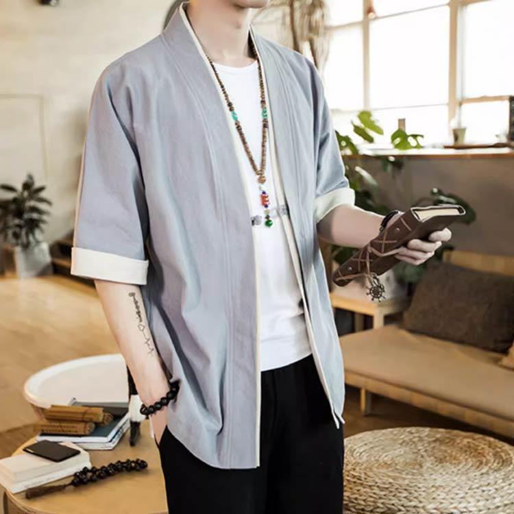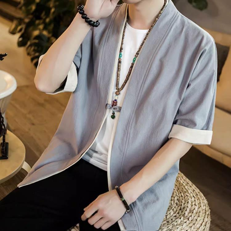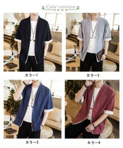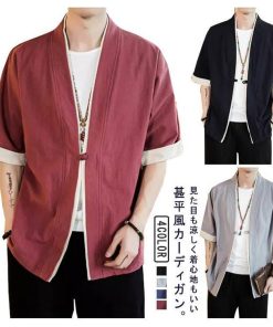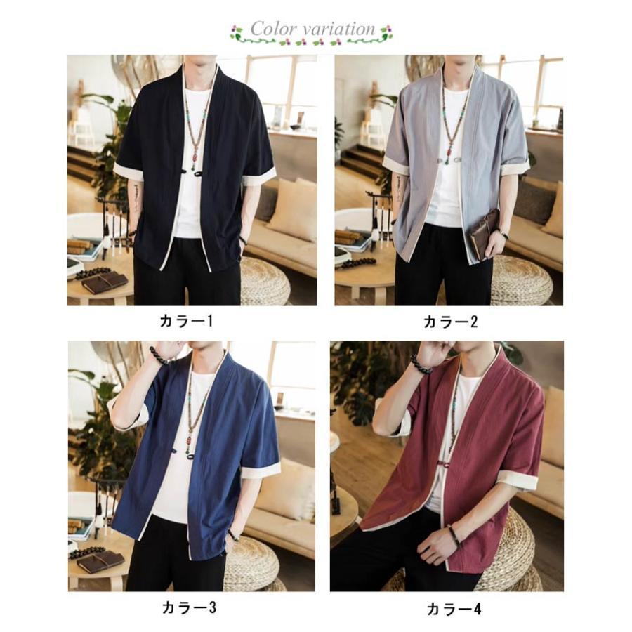 羽織 メンズ カーディガン 浴衣 大きいサイズ 前開き 甚平式 半袖 ゆったり ス アウター 夏 着物 和風 サマーカーディガン レイヤー