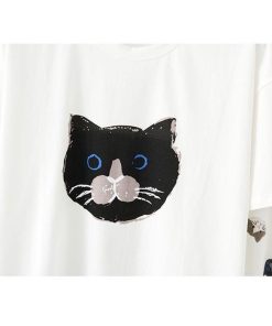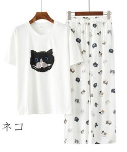 選べる2色ネコ柄が可愛い ルームウェア セットアップ パジャマ ペア レディース メンズ 上下セット 部屋着 春 夏 柔らかい お肌に優しい きれいめ