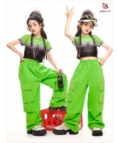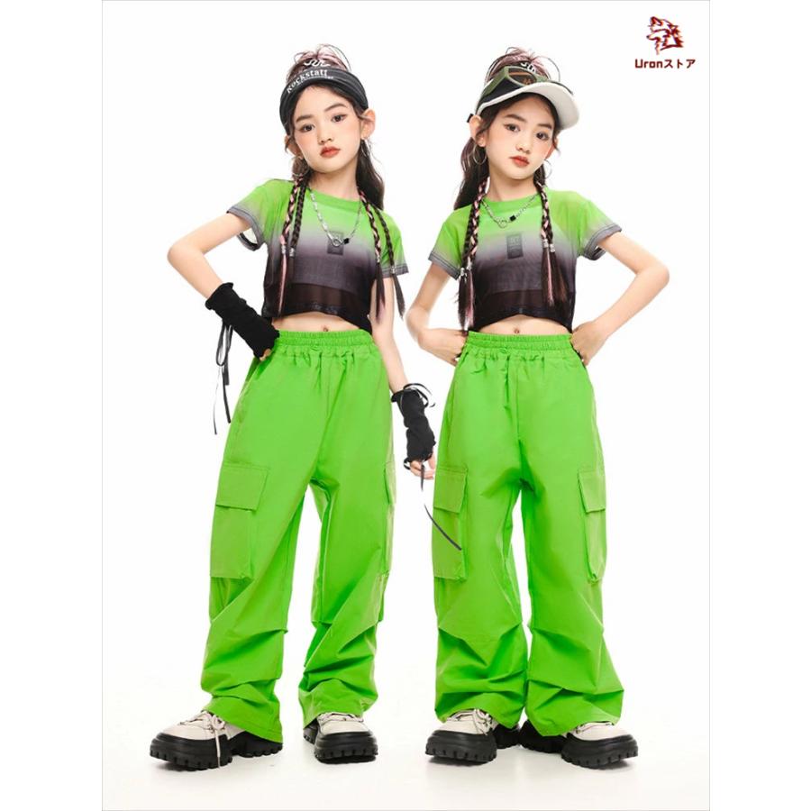 4色 タイダイ柄 短トップ 半透明 ショート丈トップ キッズ ダンス衣装 セットアップ 女の子 jazz チア チアガール 半袖 ゆったり へそ出し トップス カーゴパン