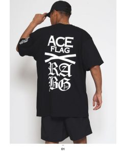 ACEFLAG ACE FLAG 上下セット 半袖 ブランド Tシャツ ハーフパンツ 上下 黒 大きいサイズ エースフラッグ セットアップ ナイロン 国旗 Aロゴ ハッシュタグ b系