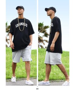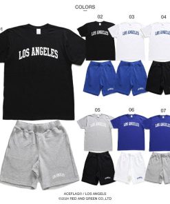 LA(エルエー)の 略称で馴染み深いLos Angelesロゴをドロップした、Tシャツとスウェットハーフパンツの上下セット。全7色。
