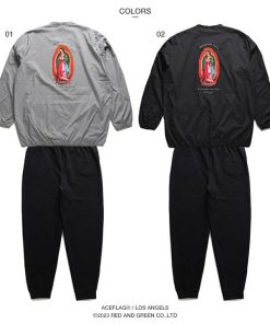 ACEFLAG ACE FLAG 上下セット 長袖 大きいサイズ エースフラッグ セットアップ ブルゾン ピステ ナイロン アウター 上下 マリア 聖母マリア ロゴ ビッグシルエット b系