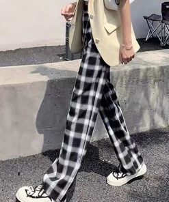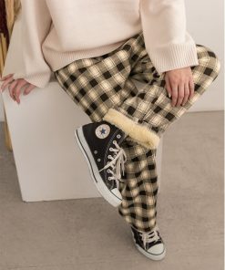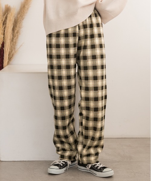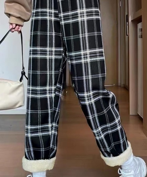 参考商品名:チェック柄 裏起毛ストレートパンツ