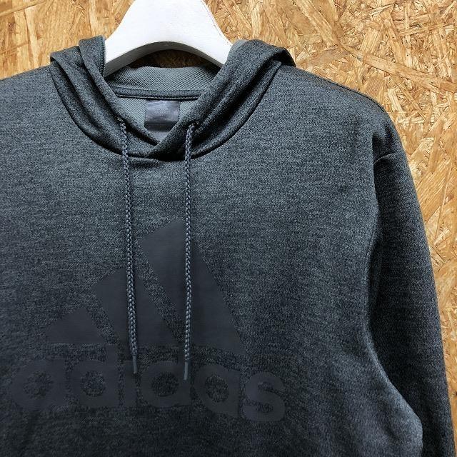 adidas アディダス パーカー プルオーバー ロゴプリント 長袖 カットソー ポリエステル100% M ヘザーネイビー 杢灰色 メンズ