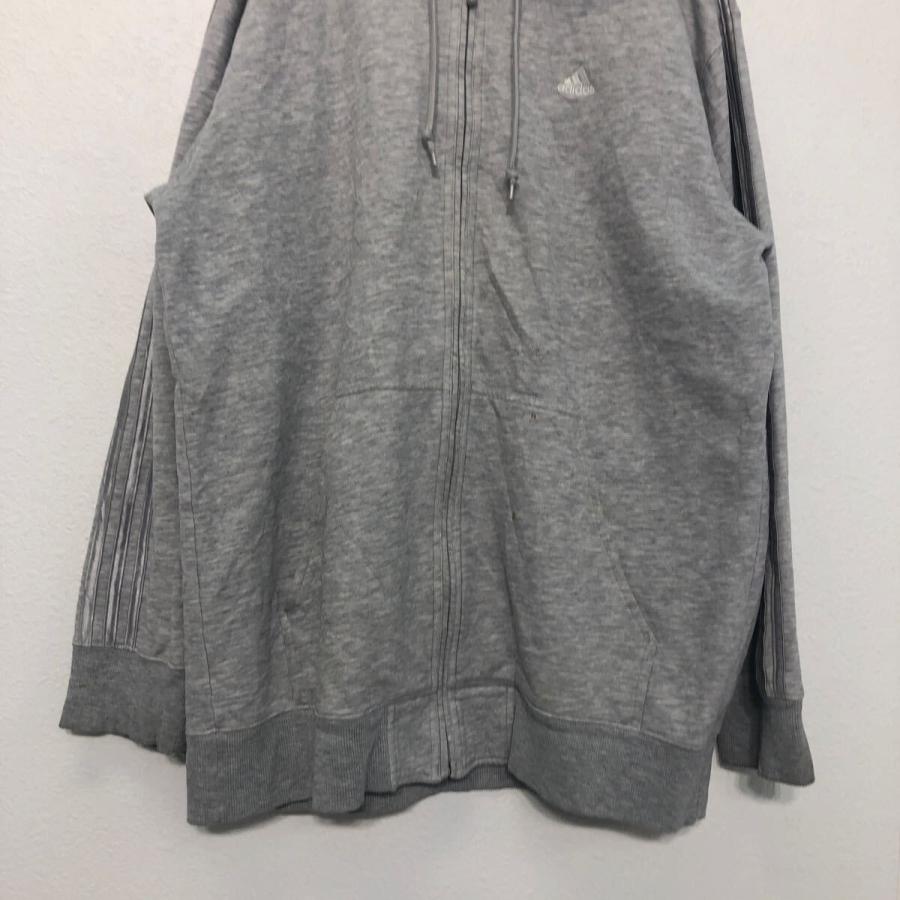 adidas ロゴ スウェット パーカー M アディダス グレー シルバー 刺繍 フルジップ ポケット 裏起毛 古着卸 アメリカ仕入 a603-6427