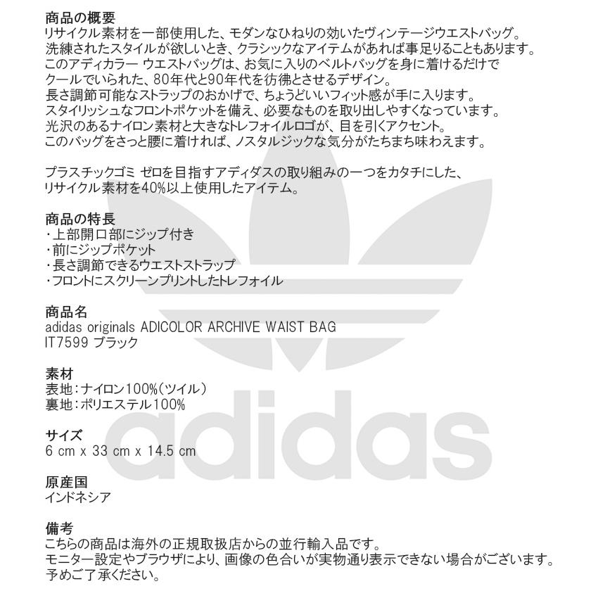 adidas Originals アディダスオリジナルス ウエストバッグ originals ADICOLOR ARCHIVE WAISTBAG トレフォイル ヴィンテージ ブラック IT7599