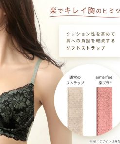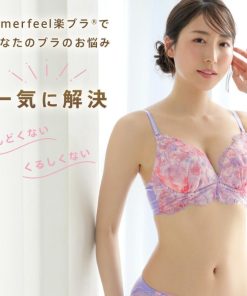 楽なのにふっくらキレイ胸をかなえる「aimerfeel 楽ブラ(R)」。こちらはチュール生地に淡い花柄をプリントし、その上から大きな花柄を刺繍することで透明感のあるデザインに仕上げたブラジャーです。もっちりとした伸縮性となめらかな素材が身体に快適にフィットし、ソフトワイヤーとやわらかカップのやさしいつけ心地が、ナチュラルでふっくらとしたキレイ胸をメイク。パットがなければ自然な美胸、パットを入れるとふんわり谷間とお好みで質感を調整できます。ブラとショーツのフロント中央にはダイヤモンド型のジュエリーで輝きをプラス。カラー展開はオレンジとパープルなどです。