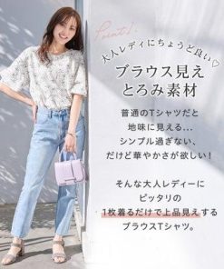 alotta アロッタ Alotta 【4つの機能付】フリル袖Tシャツブラウス (ライトブルー)