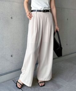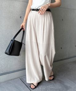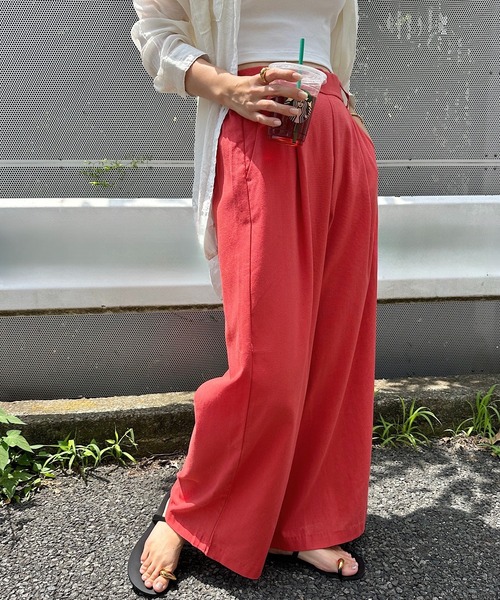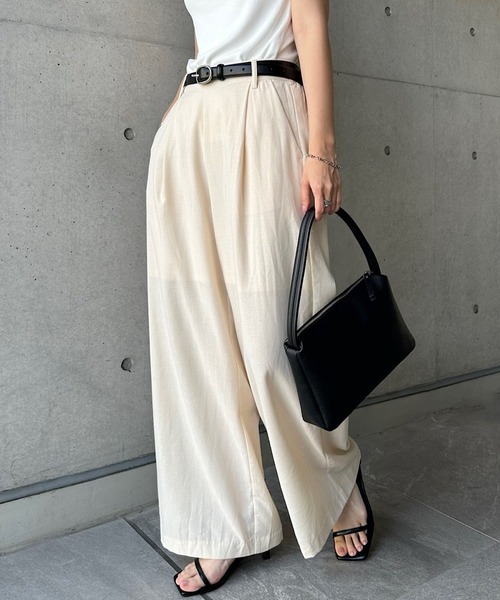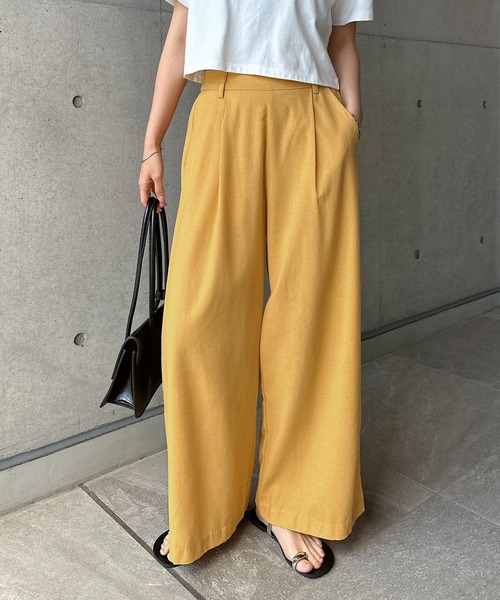 andme パンツ リネンブレンドタックワイドパンツ レディース