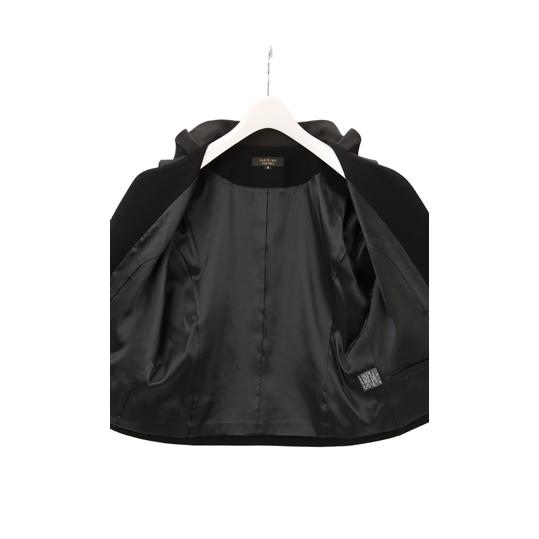 【ジャケット】、フリルカラー、フロントホック、ドレスレット、リターンカフス、内ポケット、【ワンピース】、ボレロ風、前開きファスナー、袖スリット、スラッシュポケット