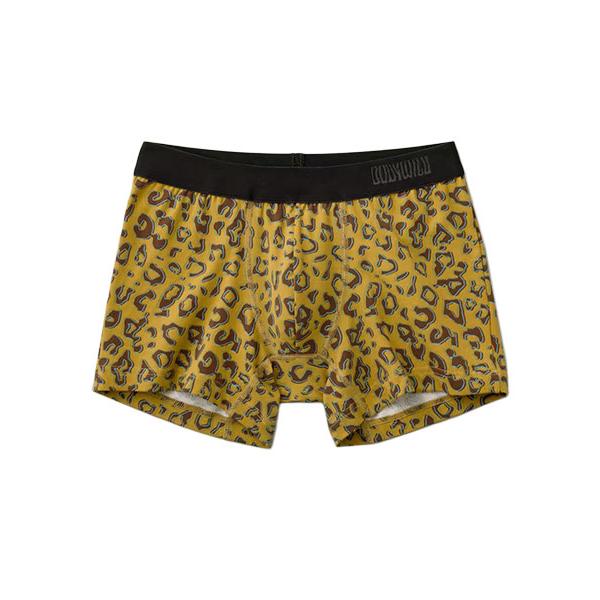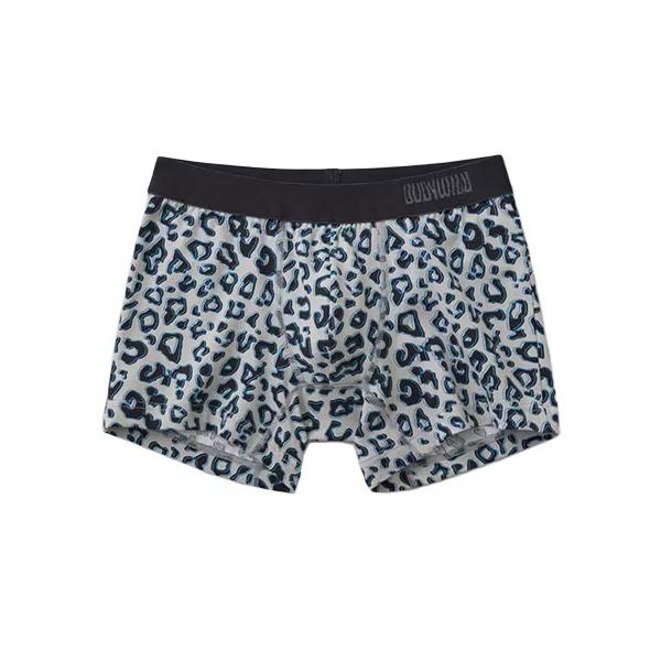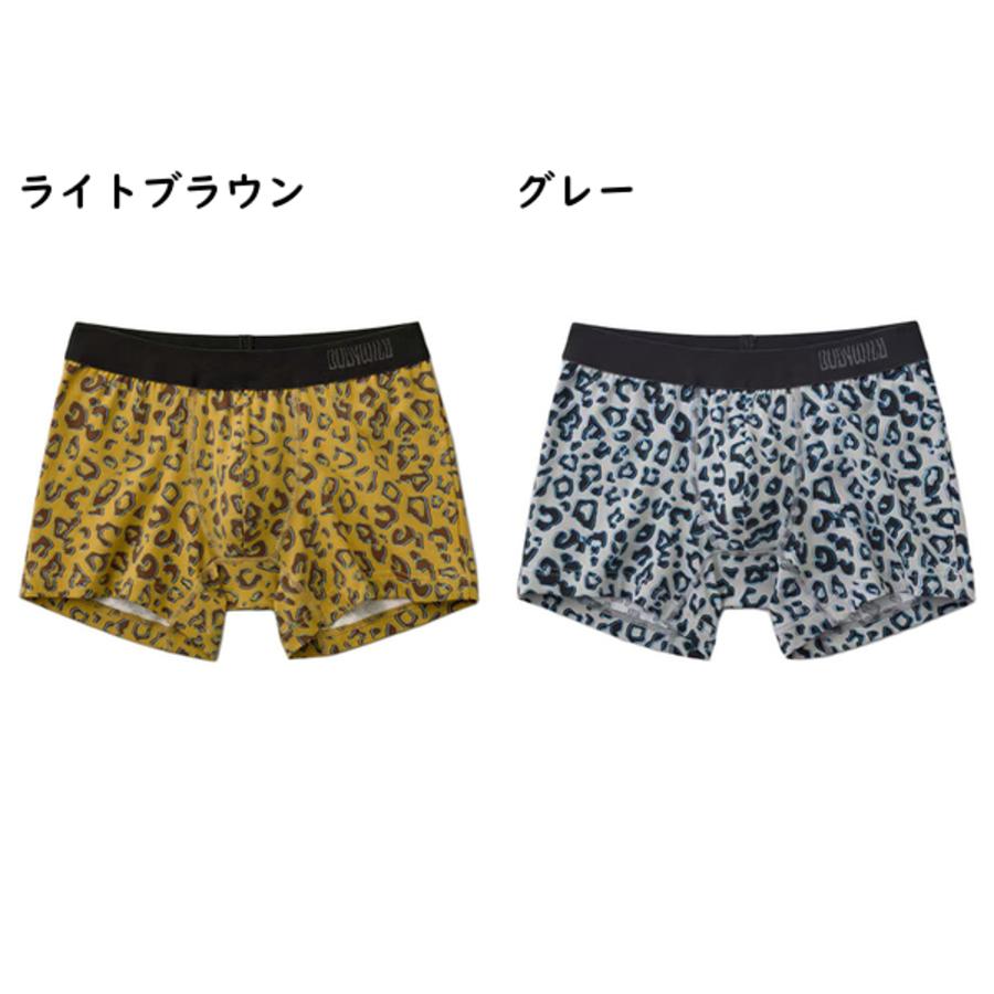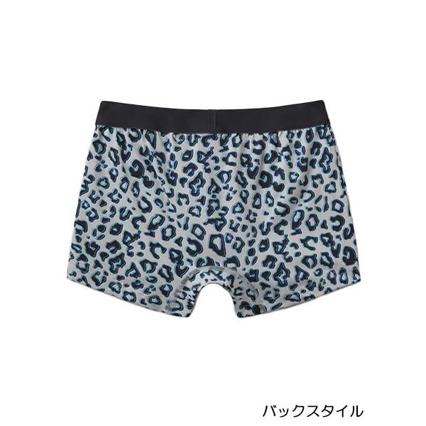グンゼ、ボディワイルドのメンズボクサーパンツ(前とじ)、綿混素材、レオパード柄。