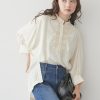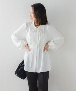 Bonjour Sagan ブラウス シャツ ひんやりタッチボリュームスリーブボウタイタックシャツ レディース