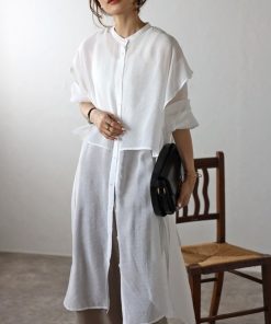商品名:バンドカラーデザインシャツワンピース