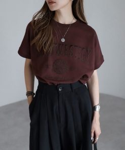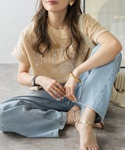 Bonjour Sagan tシャツ カレッジ刺繍ピグメントスウェットTシャツ レディース