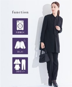 ニッセン 喪服 スーツ パンツ 大きいサイズ レディース 礼服 Callarus 日本製生地使用洗える防しわ デザイン 3点セット ロング丈 ジャケット +ドレープ ブラウス + 有