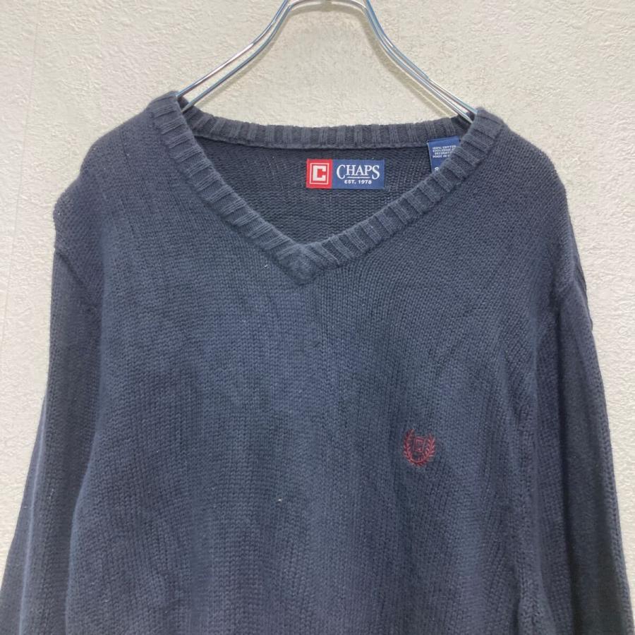 CHAPS コットンニット セーター S ネイビー チャップス Vネック ワンポイントロゴ 古着卸 アメリカ仕入 a611-6008