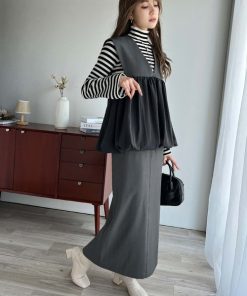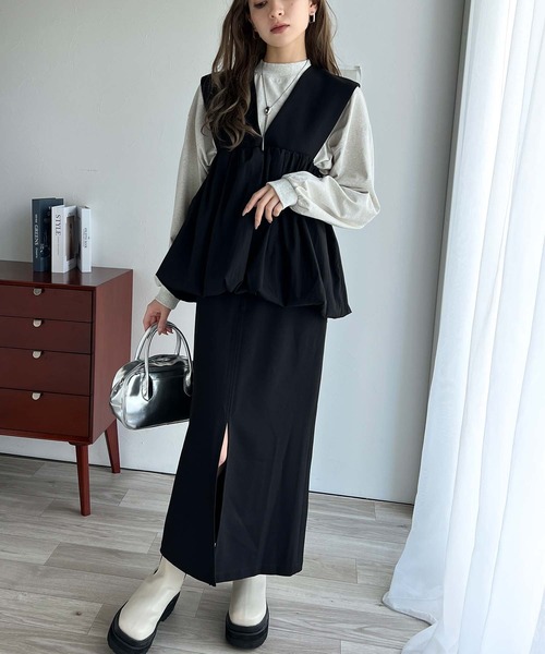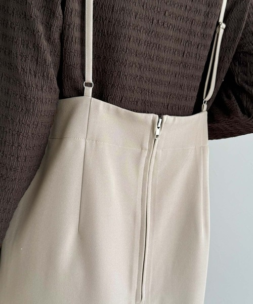 参考商品名:女性らしい上品シルエット。前後2wayサスペンダー付きタイトスカート(ロング丈・セットアップ可)