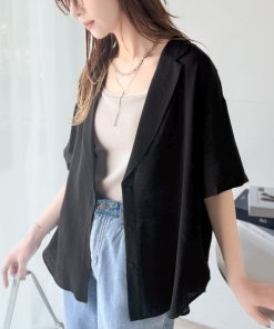 キーワード:ブラウス シャツ レディース 開襟 半袖 無地 夏 春