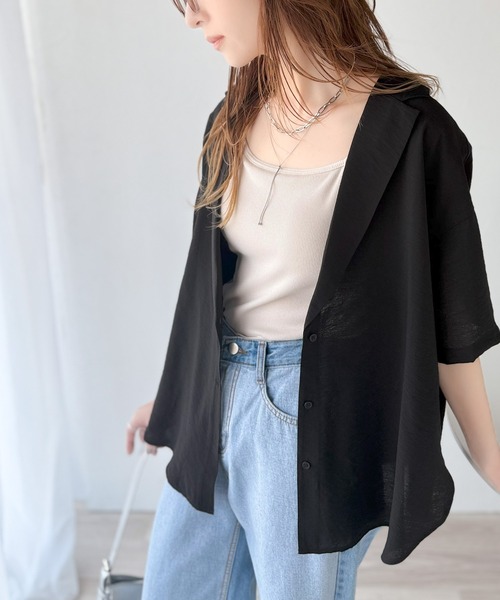 参考商品名:透ける、揺れる、魅せる。ヴィンテージライクシアー素材開襟シャツブラウス(半袖)
