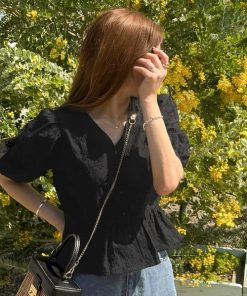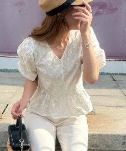 参考商品名:《AYA×クラシカルエルフコラボ》綿100%フレンチガーリー☆ショート丈花柄レース裾フリルブラウス(半袖)