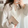 キーワード:ブラウス シャツ レディース コットン ノーカラー 七分袖 五分袖 無地 夏 春