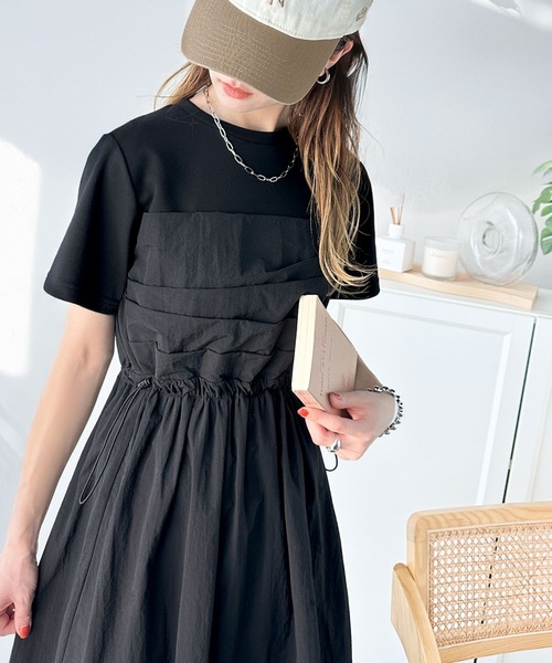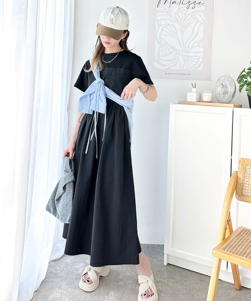 参考商品名:1枚で主役級。脇ドロストビスチェドッキングワンピース(無地&ボーダー柄)