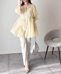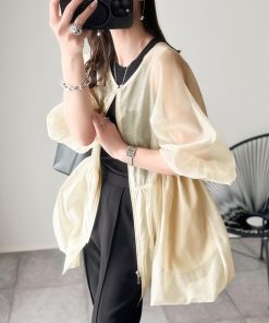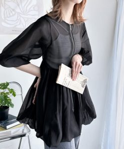 参考商品名:程よい透け感が女性らしい。前後2WAYのオーガンジーのバルーンブルゾン