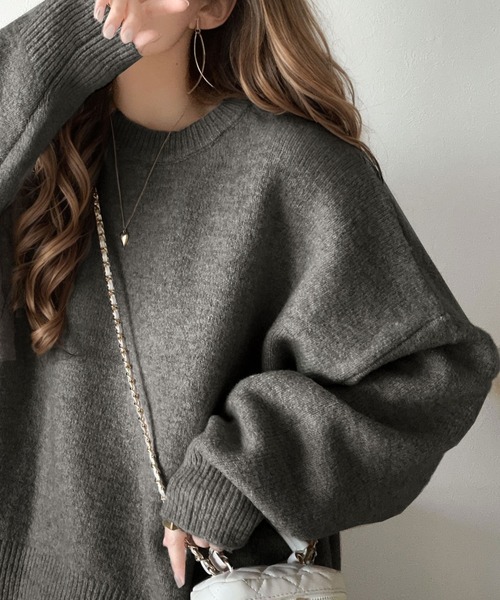商品名:ゆったりふわもちの癒しアイテム。コクーン シルエット ミックス カラー オーバーサイズニット
