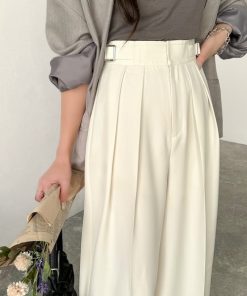 商品名:上品なシルエットの優秀パンツ♪サイドベルトハイウエスト2タックワイドパンツ