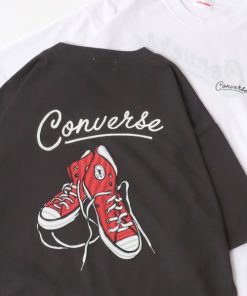 商品名:CONVERSE/コンバース UVカット 接触冷感 シューズイラストバックプリント 裾ドローコード付半袖Tシャツ レディース メンズ