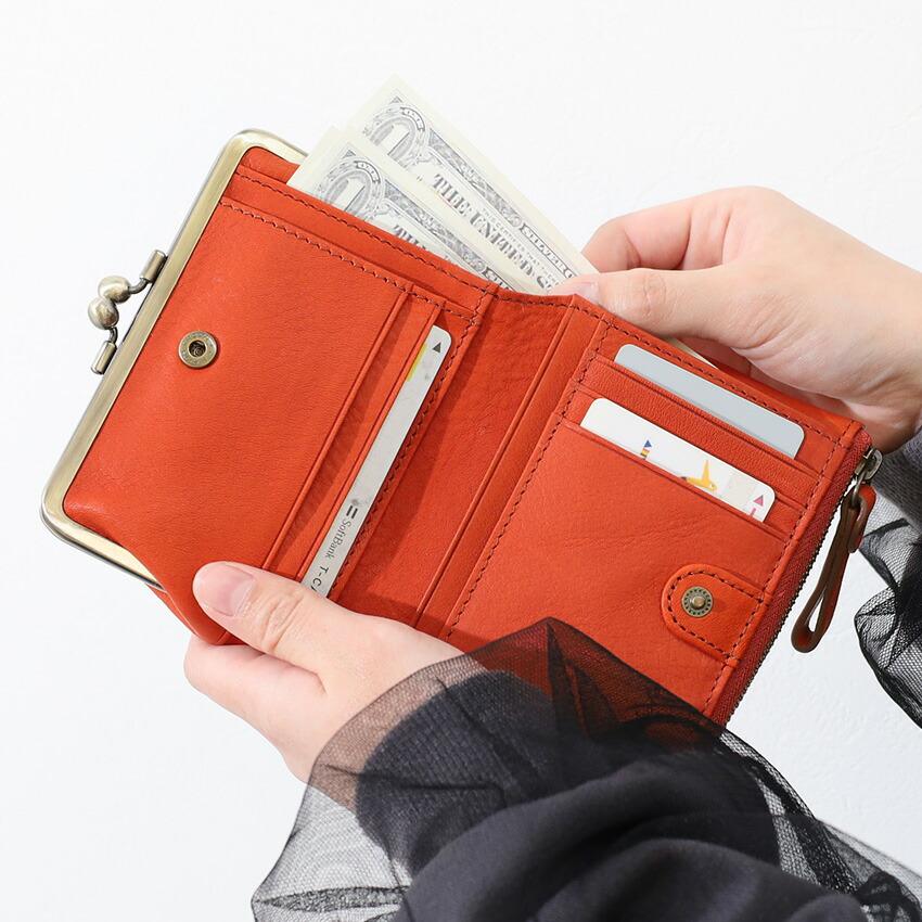 可愛らしさと使いやすさを兼ね備えた二つ折りがま口財布です。