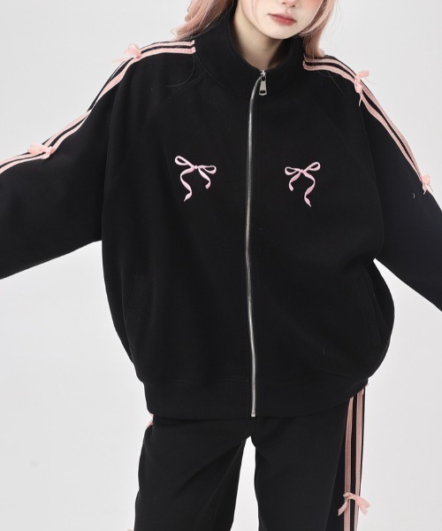 商品名:大人気【 セットアップ 】サイドラインミニリボンスウェットブルゾン &パンツ SET