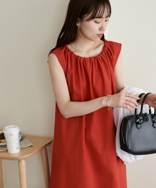 商品名:【新色追加!/WEB限定】衿ギャザーノースリワンピース