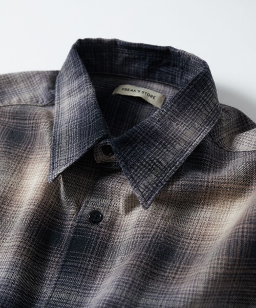 参考商品名:限定展開 Relax Fit リラックスフィット ブリーチ加工 オンブレチェック ネルシャツ