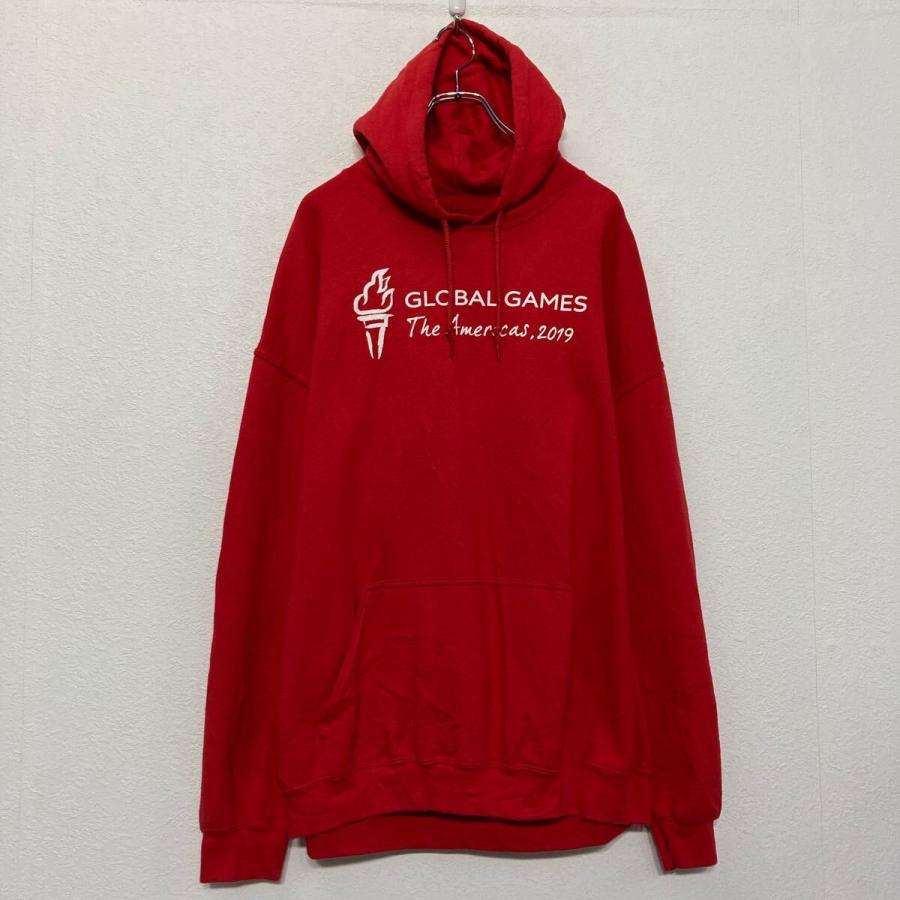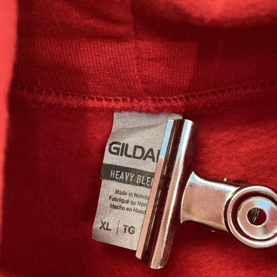 GILDAN プリント スウェット パーカー ギルダン XL レッド ビッグサイズ バックプリント 古着卸 アメリカ仕入 a609-5165