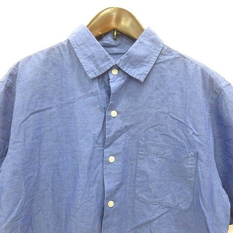 グローバルワーク GLOBAL WORK シャツ 半袖 麻混 リネン混 L 紺 ネイビー /MN メンズ