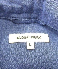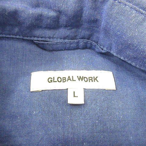 GLOBAL WORK グローバルワーク シャツ 半袖 麻混 リネン混 L 紺 ネイビー /MN メンズ