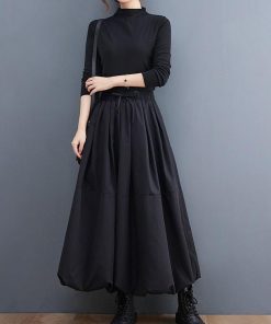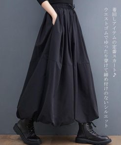 GOLDJAPAN 大きいサイズレディース スカート ロング タック フレア ウエストゴム ギャザー 冬新作 秋服 冬服 春服 夏服 LL 2L 3L 4L 5L F ブラック 黒 ゴールドジャパン