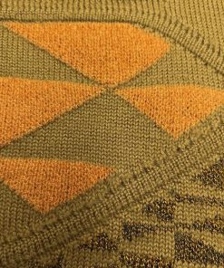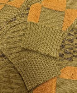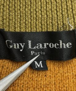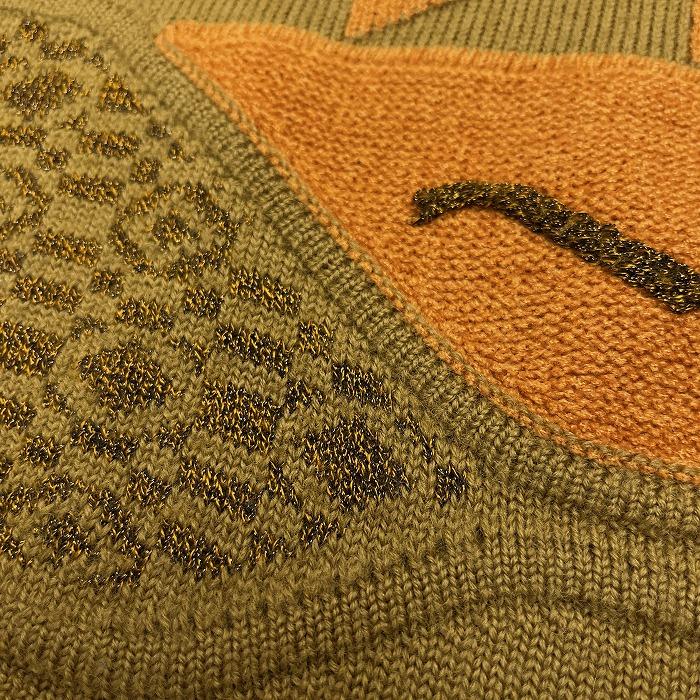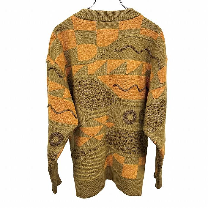 Guy Laroche ギラロッシュ セーター ジャカード 総柄 長袖 丸首 ウール×アクリル×レーヨン M グリーン 緑×茶 (ラメ糸:ゴールド) メンズ