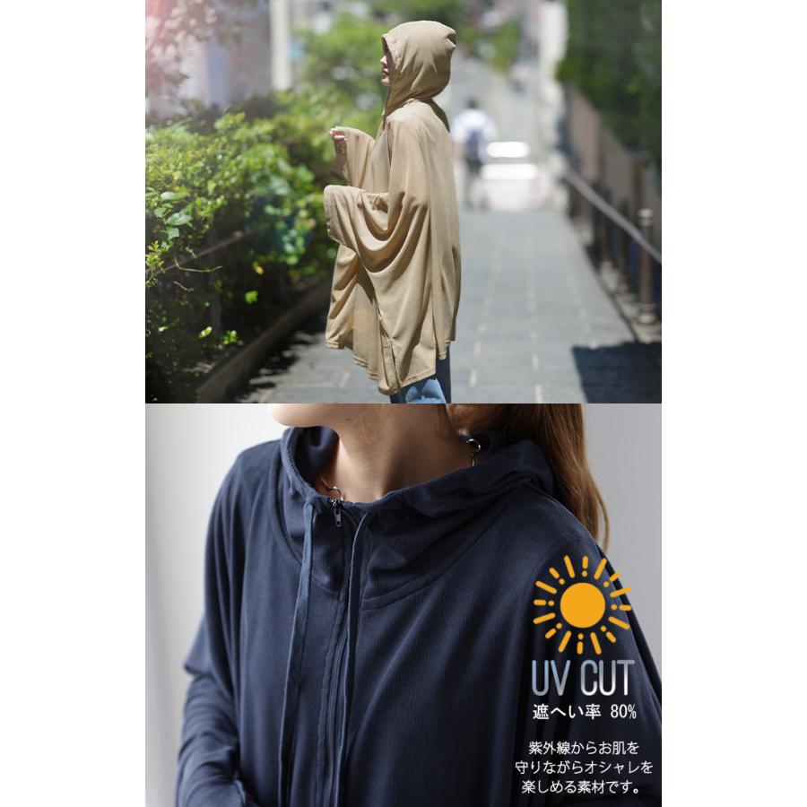 HUG.U カーディガン レディース UVカット パーカー トップス 紫外線対策 薄手 涼しい 体型カバー 大きいサイズ ポンチョ 長袖