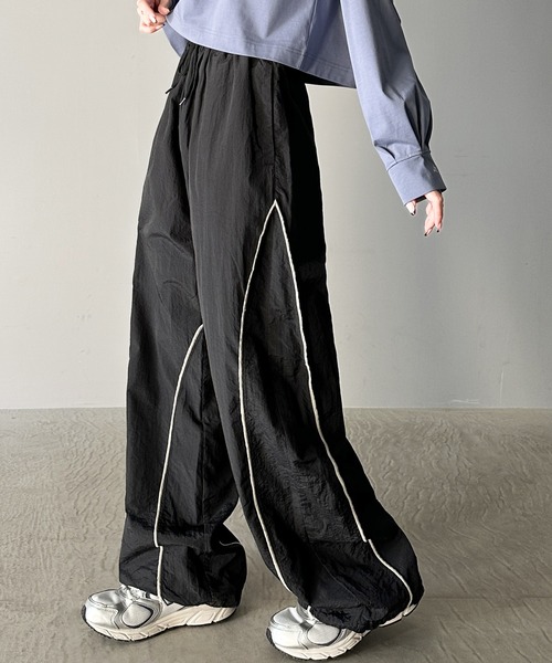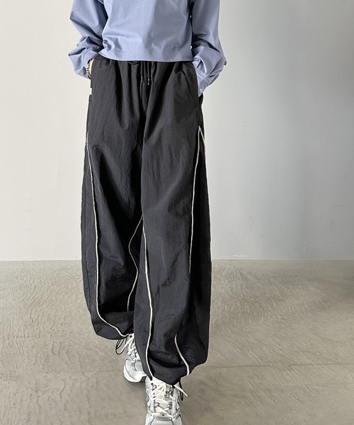 参考商品名:《Javaジャバコラボ》ストリートなワイド感。パイピングライン使いストリングナイロンパンツ