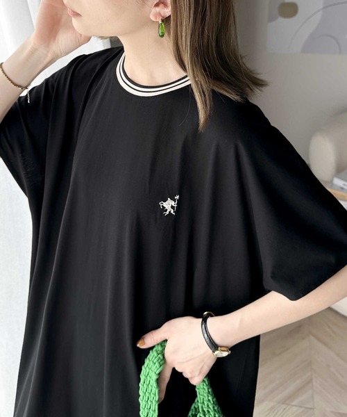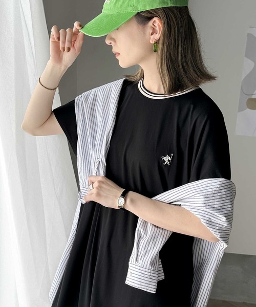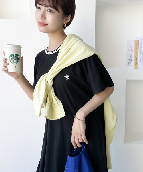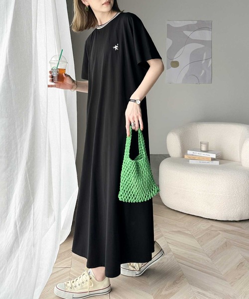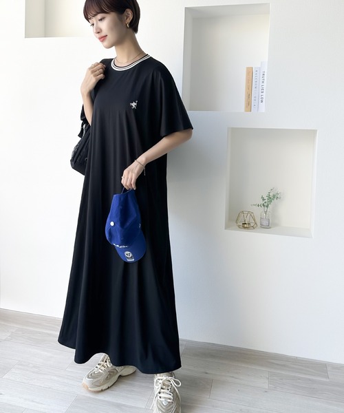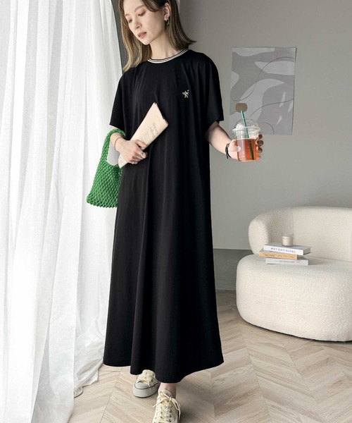キーワード:ワンピース フレア ロング ワンポイント 半袖